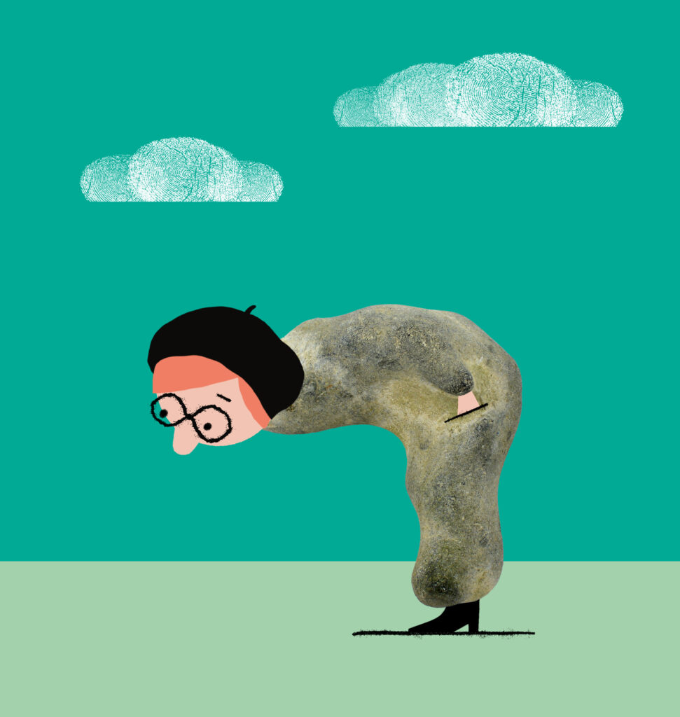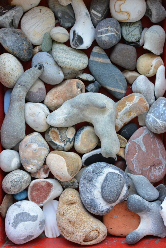 Hoe het beeld tot stand kwam zie je op de foto’s. Van een ‘we willen graag zoiets’ foto uit het boek ‘Je weet niet wat je ziet’ van Will Gompertz, naar een gevonden steen op het strand in Normandië en vervolgens naar een illustratie.