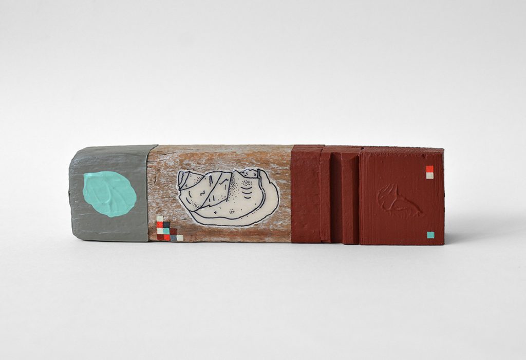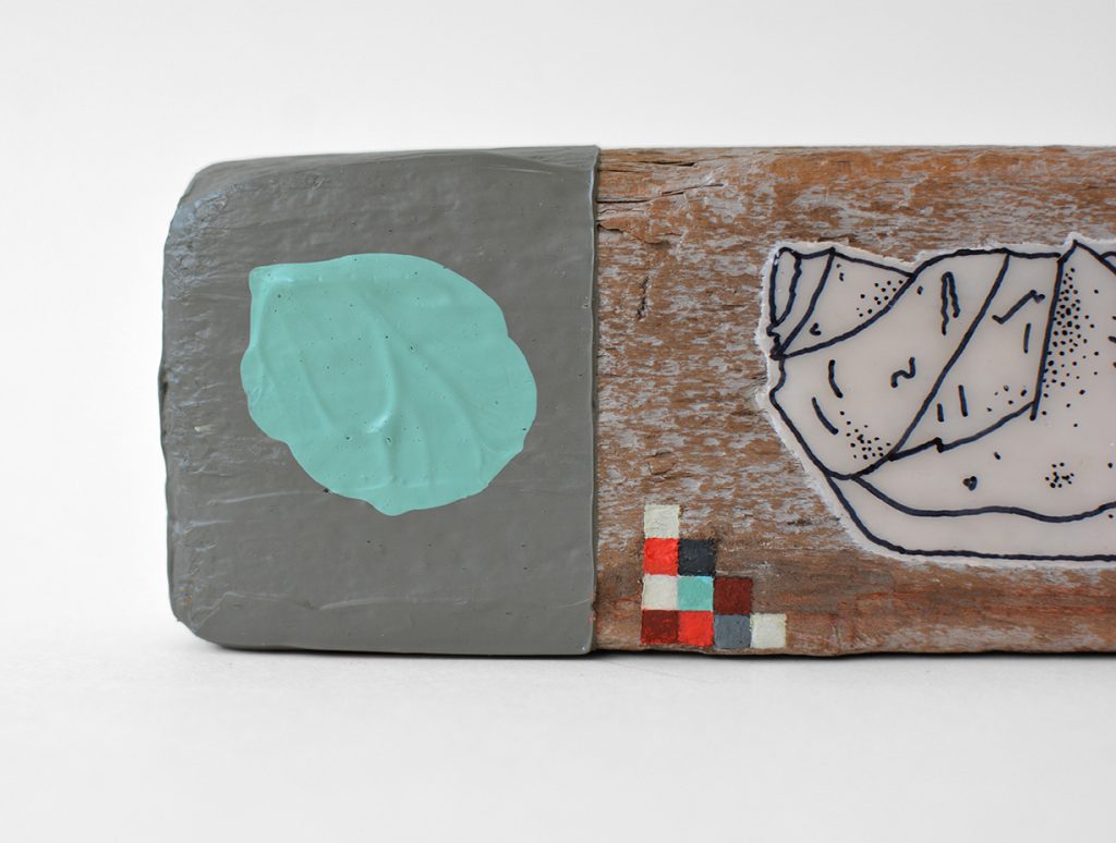 mixed media op gevonden hout20 cm x 5.2 cm | verkocht