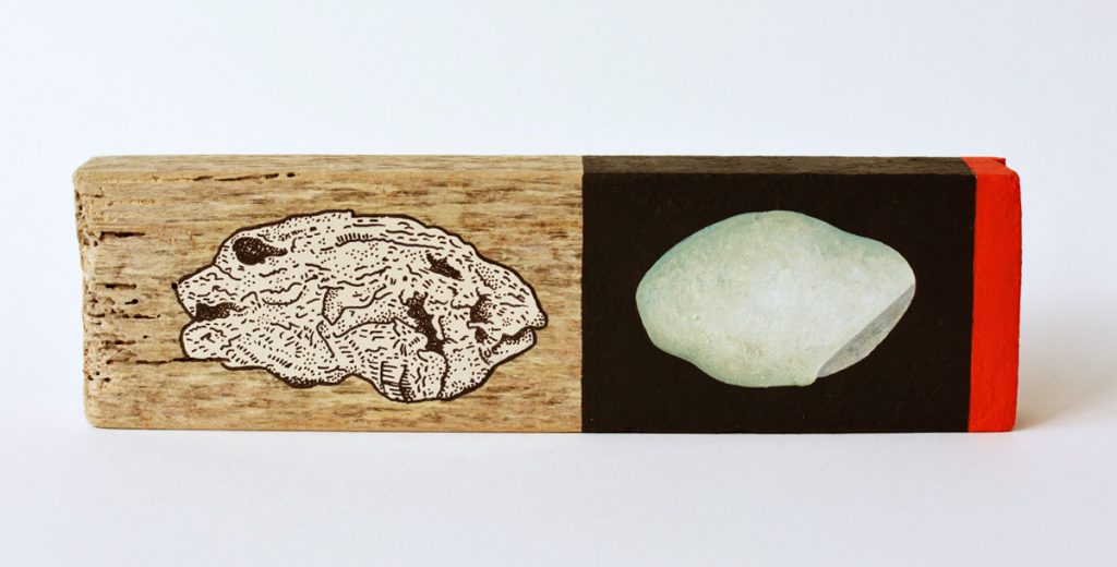 mixed media op gevonden hout21 cm x 5.8 cm | verkocht