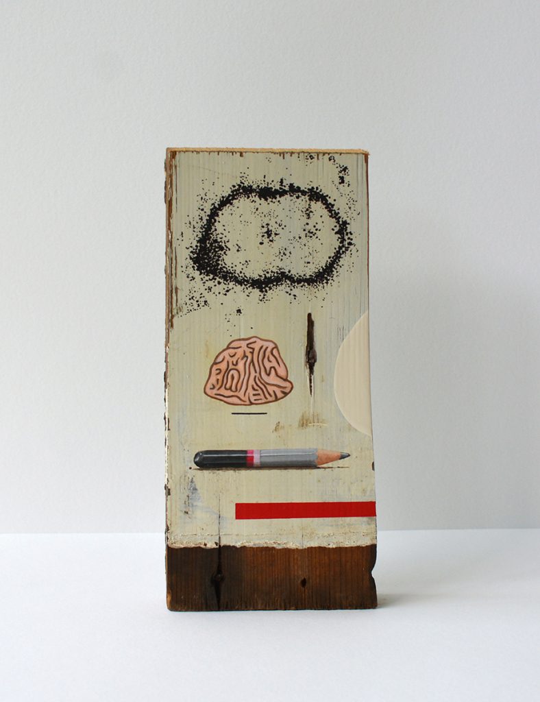 Acrylgouache, posca marker en alkyd paint op gevonden hout18.3 x 8.5 cm | verkocht
