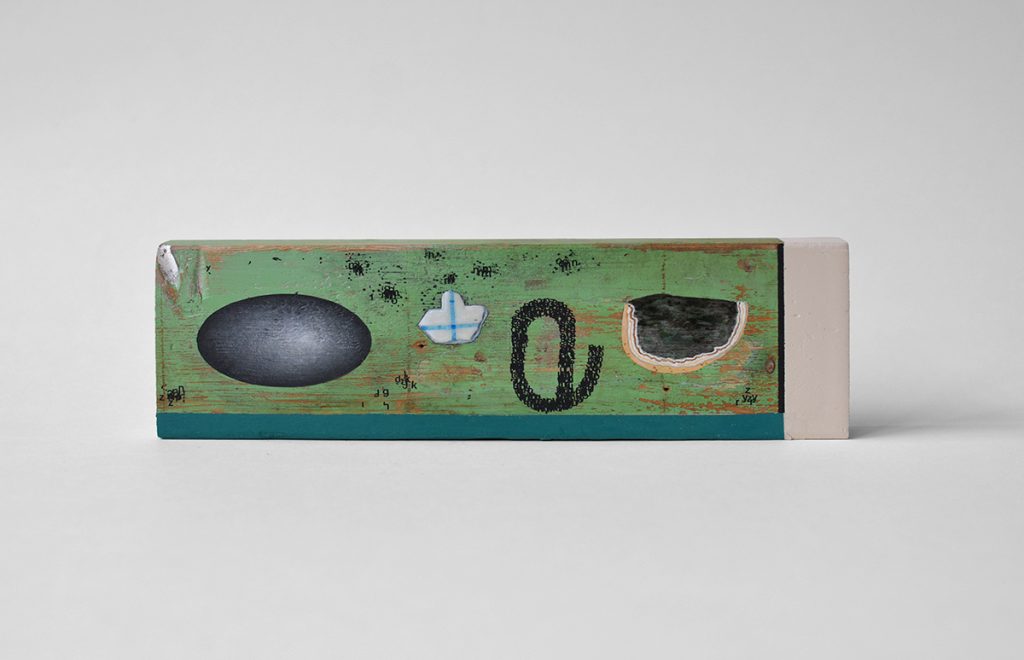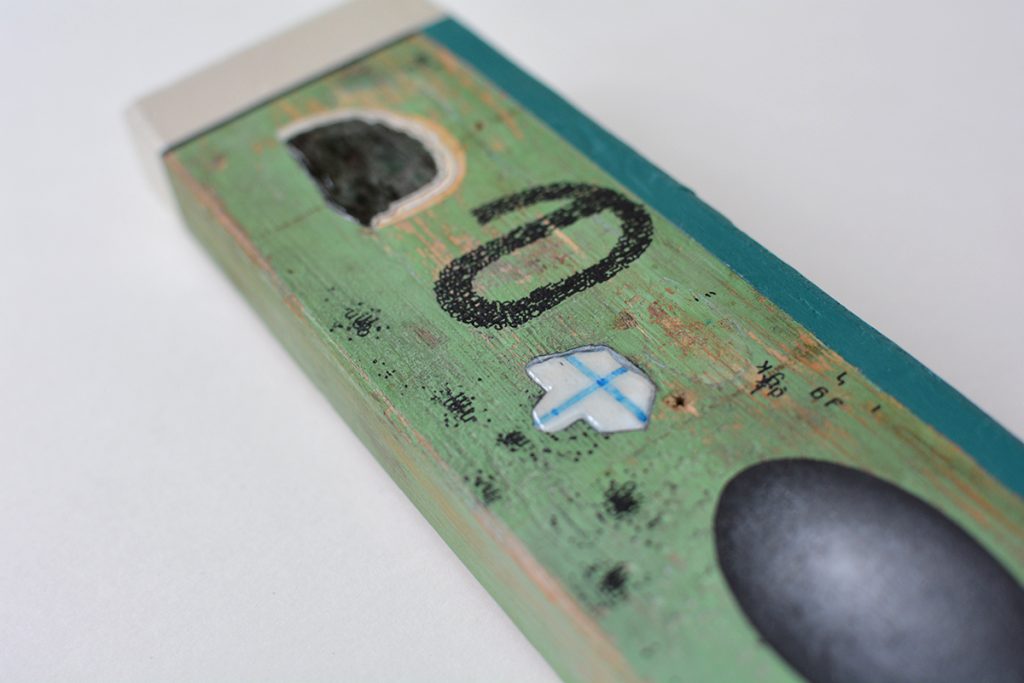 mixed media op gevonden hout22 x 6.3 cm | verkocht