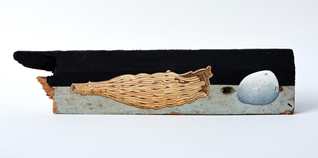gouache en potlood op gevonden hout29,7 cm x 6,7 cm | verkocht