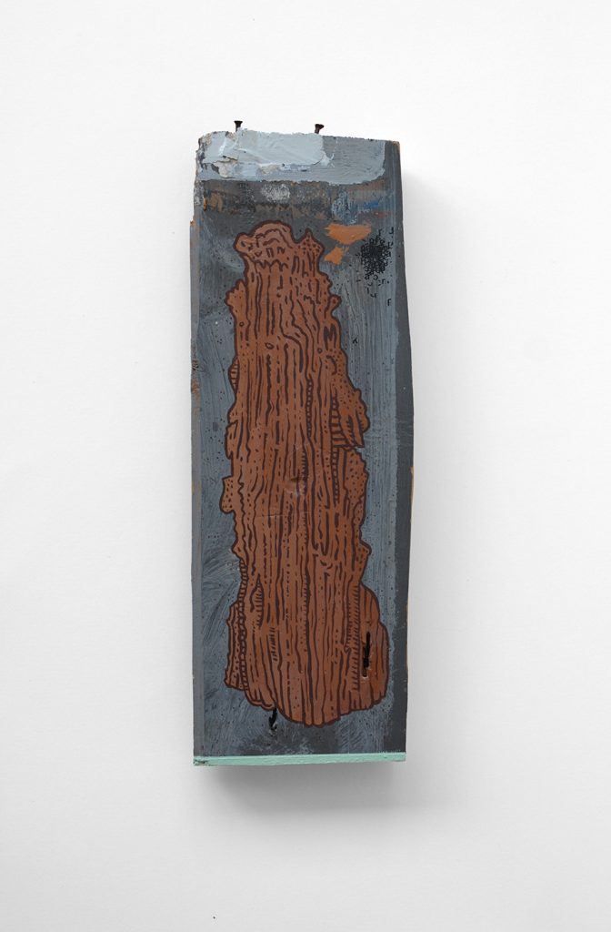 Acryl en gouache op gevonden hout28,5 cm x 9,5 cm