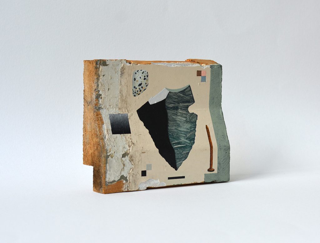 mixed media op gevonden hout13 x 11 cm | verkocht