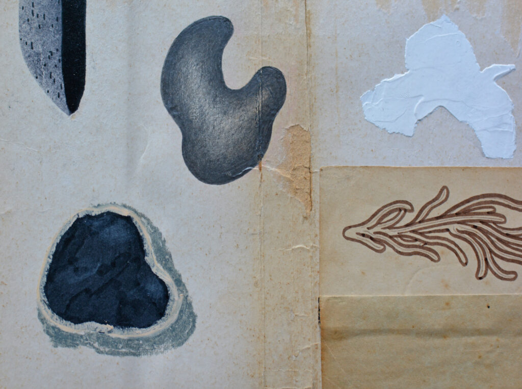 Mixed media collage op paneel 31 cm x 43.3 cm