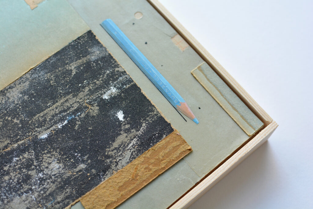 Mixed media collage op paneel 31 cm x 43.3 cm
