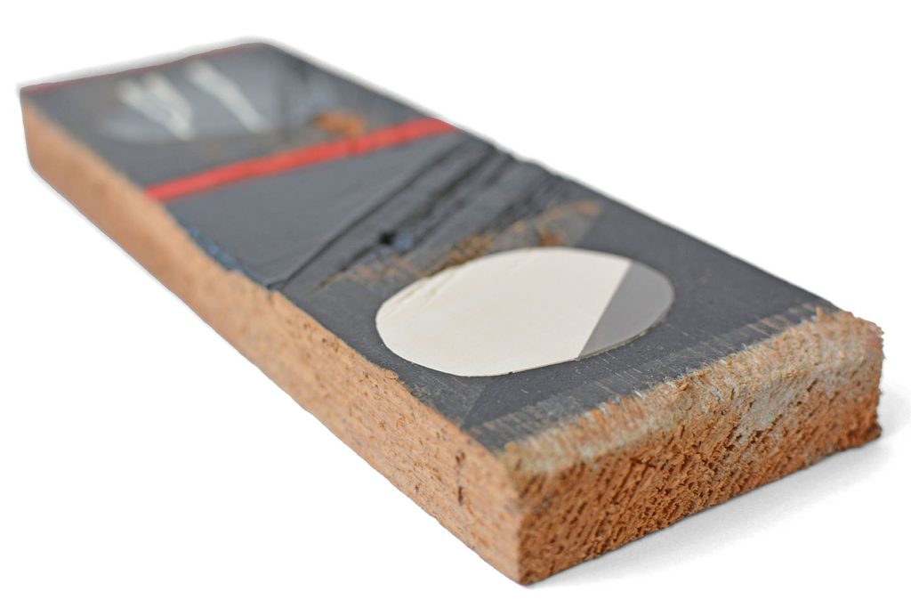 Acryl gouache, acryl en alkyd op gevonden hout12 cm x 5.8 cm