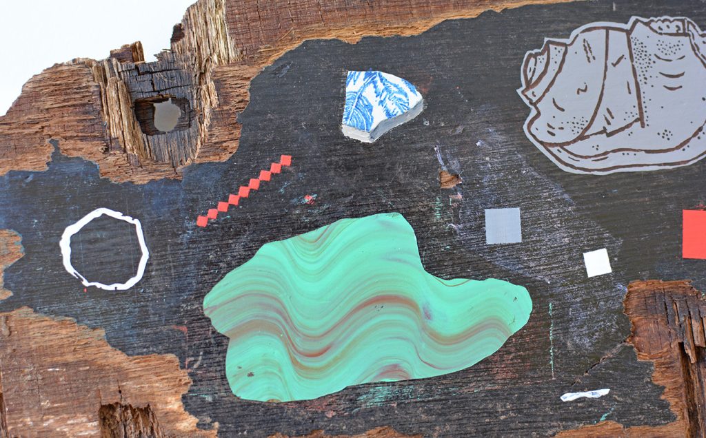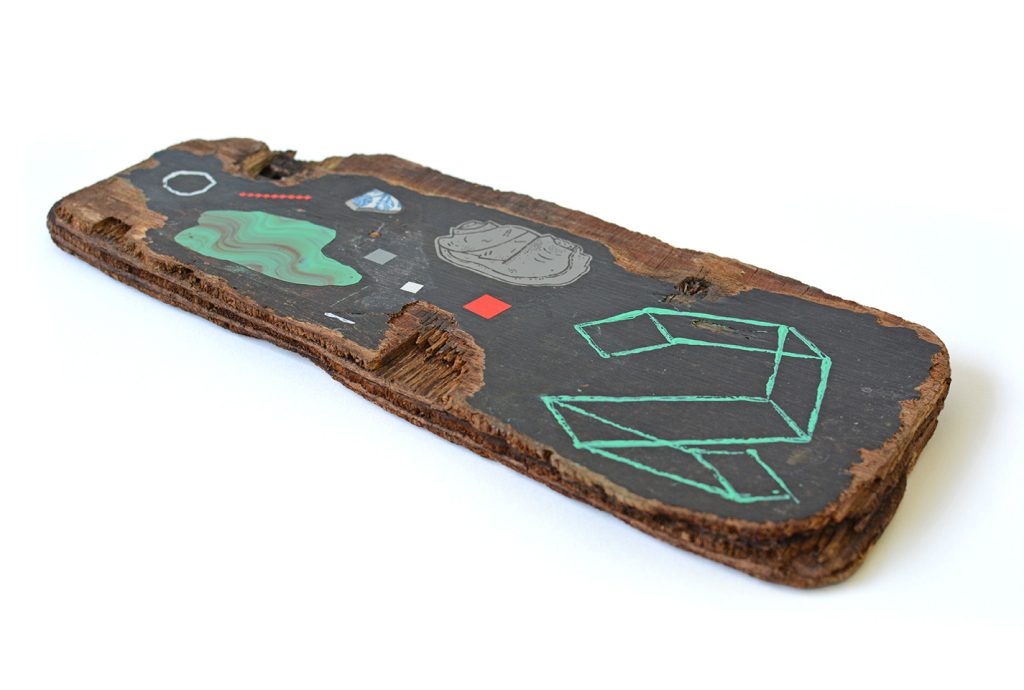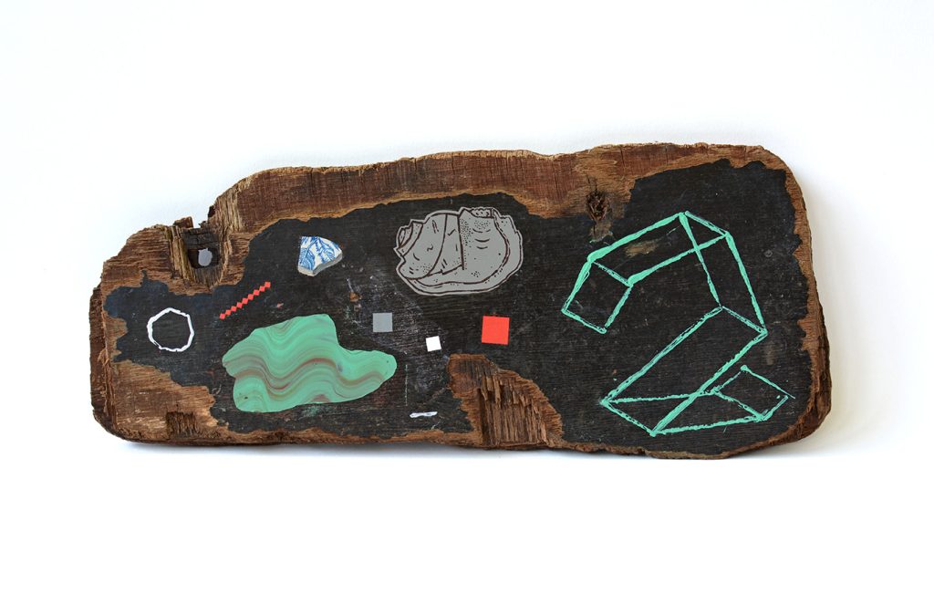 Acryl gouache, marker en hoogglans vernis op gevonden hout37 cm x 15 cm